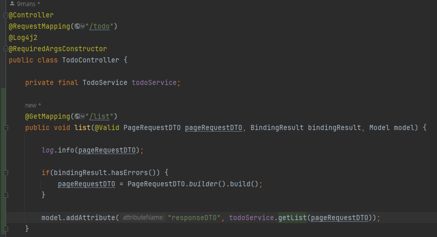 매퍼에서 가져오는 todo의 목록과 전체 데이터의 수를 한번에 담아 서비스 계층에 전달하기 위한 DTO를 만든다.