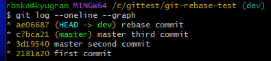 rebase에 성공하고 graph를 확인해보면 히스토리가 직선으로 연결되어 있는 것을 확인할 수 있다.