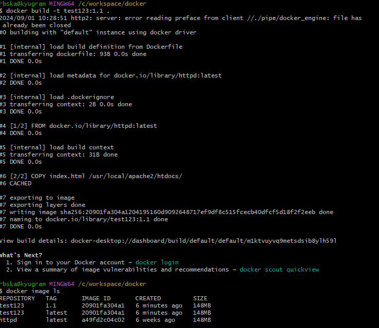 # test123뒤에 :1.1 형식을 입력하면 버전을 태그할 수 있다. 마지막 .은 디렉토리의 경로이다