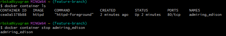 컨테이너가 실행되는 순간부터는 docker를 통해 컴퓨터의 리소스가 소비되니 실습이 끝나면 정리를 해주는 것이 좋다.